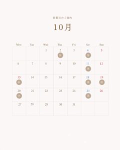 土曜・10/2(木)・10/13(月)・10/19(日)・10/20(月)